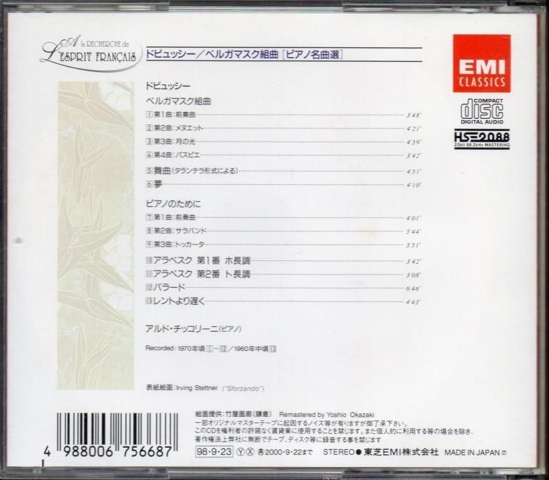 −[1-7]のオリジナル・アルバムに、小品集からの[7]を加えたもの。−チッコリーニは1991年 ドビュッシーのピアノ曲全集を録音しました (EMI)。
