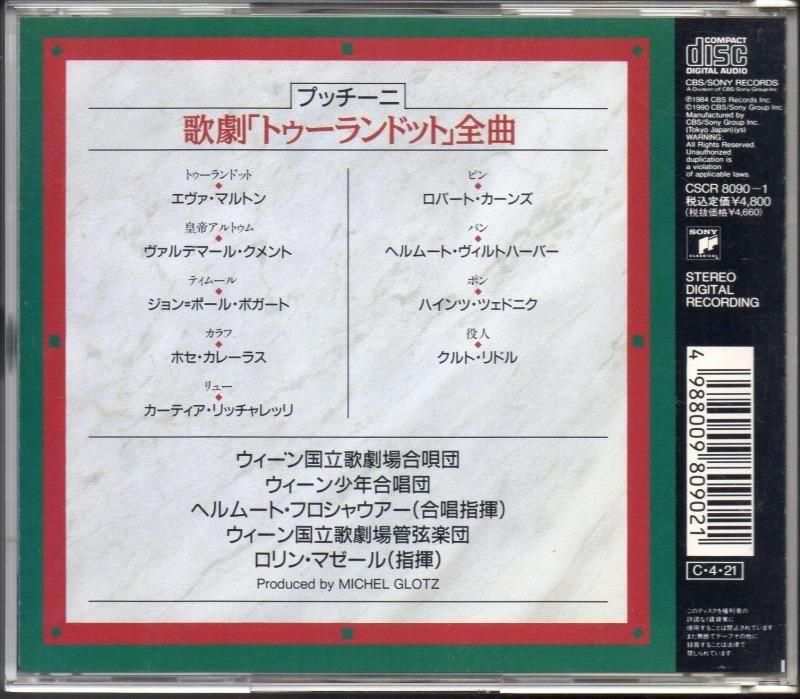 プッチーニ:トゥーランドット マゼール=OWOO; マルトン(S) 他 /L (CSCR8090・2CD)