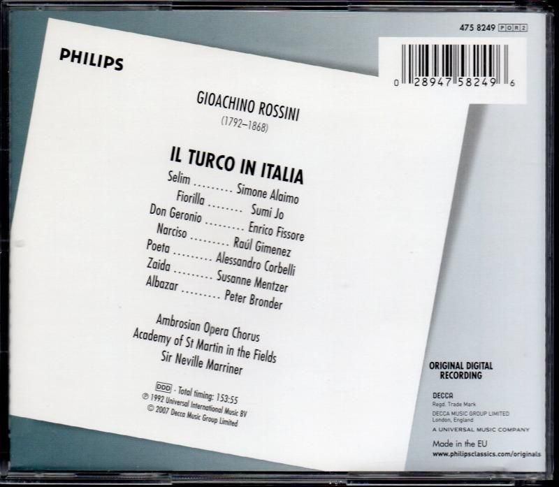 ロッシーニ:イタリアのトルコ人 マリナー=ASMF; アライモ(Br) スミ・ジョー(S) 他 (PHILIPS・2CD)