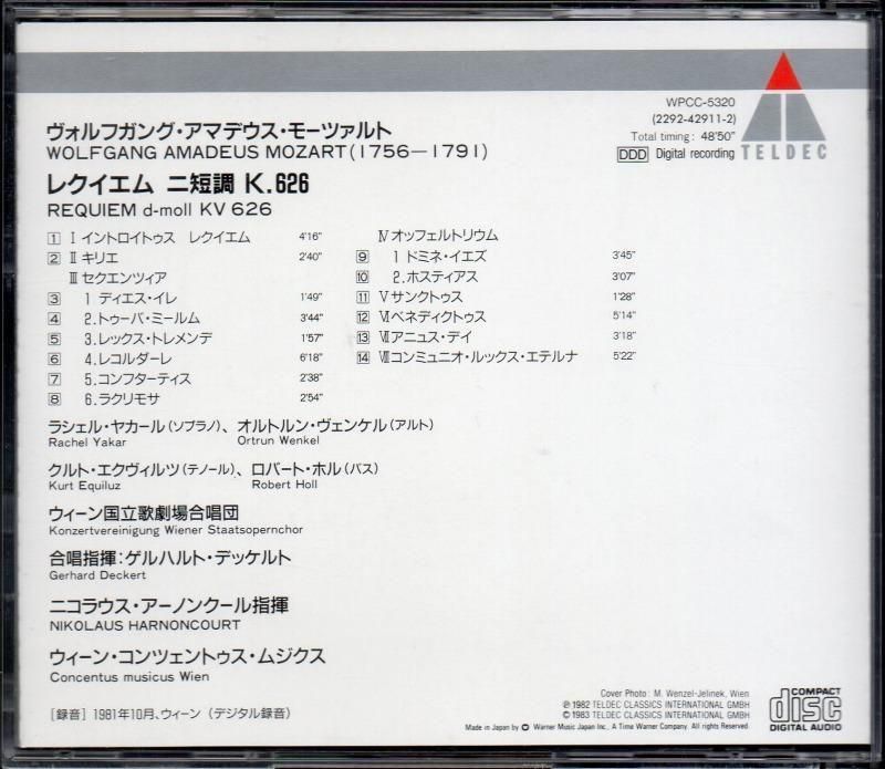 モーツァルト:レクイエム アーノンクール=CMW 他 /81年 (WPCC5320)