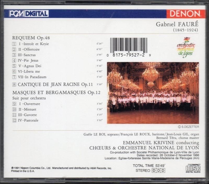 フォーレ:レクイエム,マスクとベルガマスク 他 クリヴィヌ=ONL,ル・ロワ(S) 他 (外DENON)