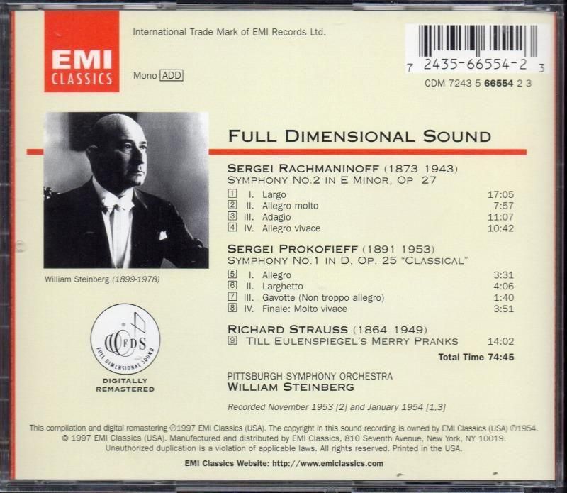 ラフマニノフ:交響曲第2番,プロコフィエフ:古典交響曲 他 スタインバーグ=Pitt (EMI)