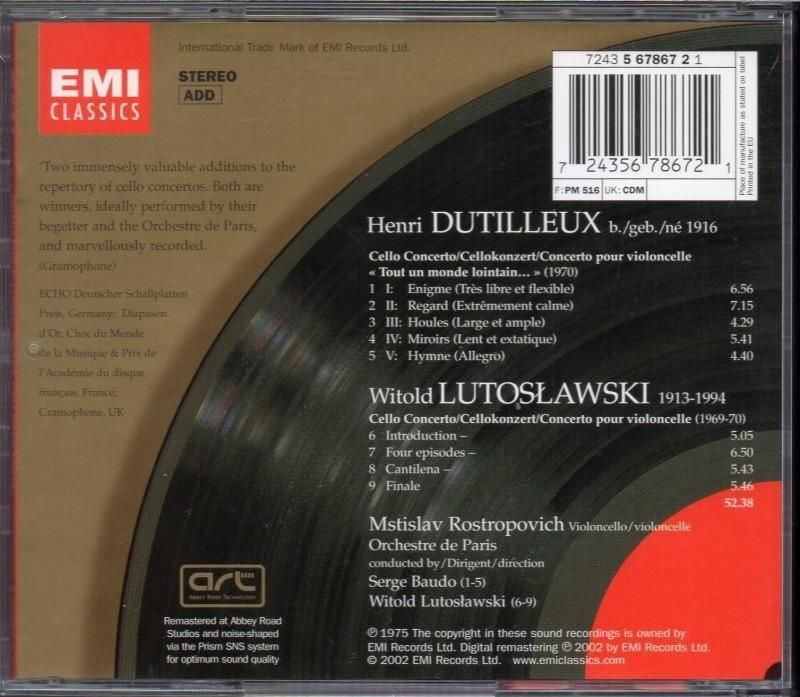 デュティユー,ルトスワフスキ:チェロ協奏曲 ロストロポーヴィチ(vc) (EMI)