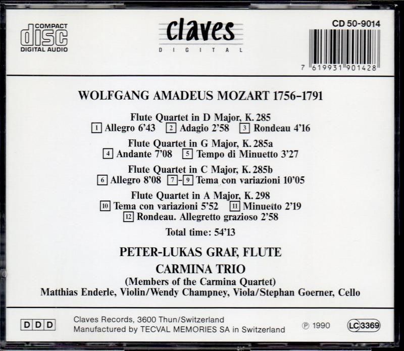 モーツァルト:フルート四重奏曲全曲 グラーフ(fl) カルミナTr (CLAVES)