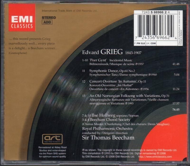 グリーグ:ペール・ギュント,古いノルウェーの民謡 他 ビーチャム=RPO (EMI)