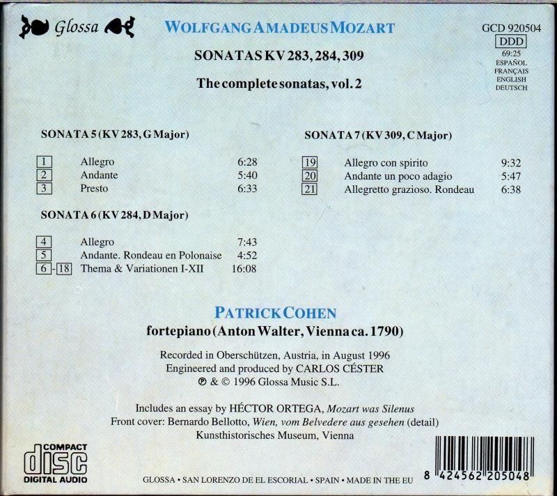 • サブ画像1:モーツァルト:ピアノ・ソナタ K283, 284, 309 コーエン(fp) (GCD920504)ジャケット写真