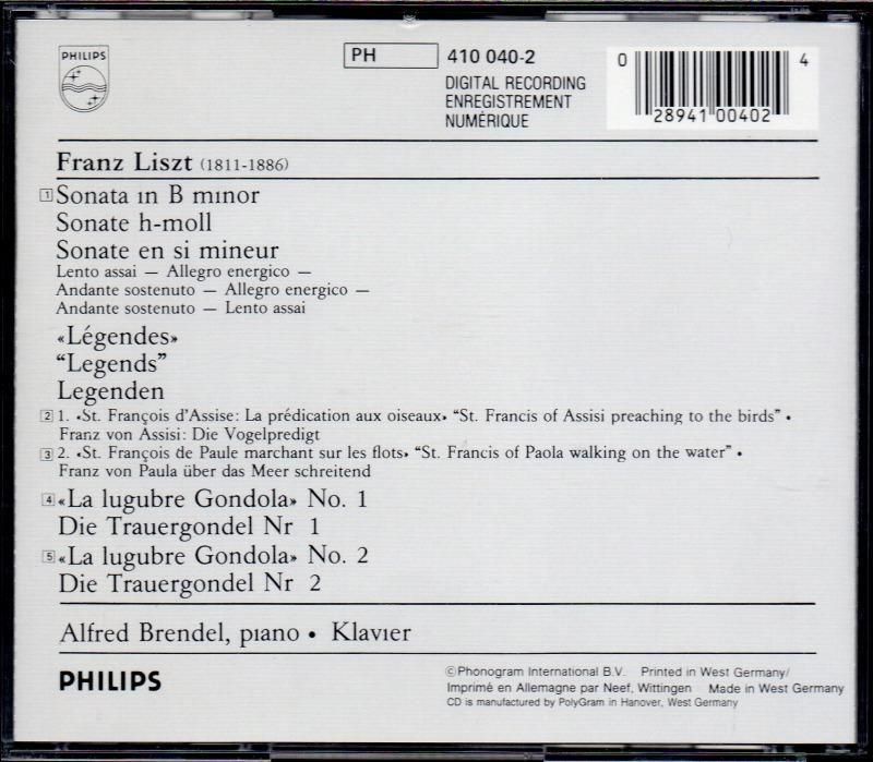 リスト:ピアノ・ソナタ,伝説,悲しみのゴンドラ ブレンデル(p) (PHILIPS)