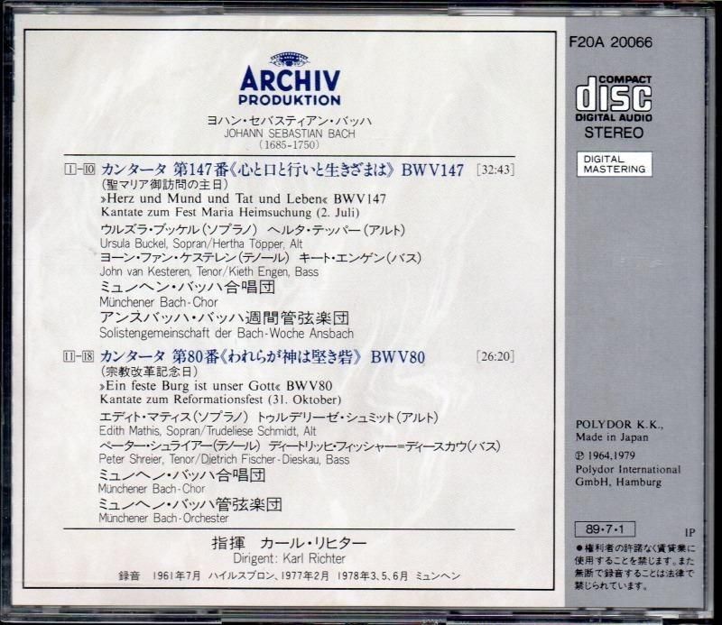 バッハ:カンタータ第80,147番 リヒター=アンスバッハ週間o 他 (F20A20066)