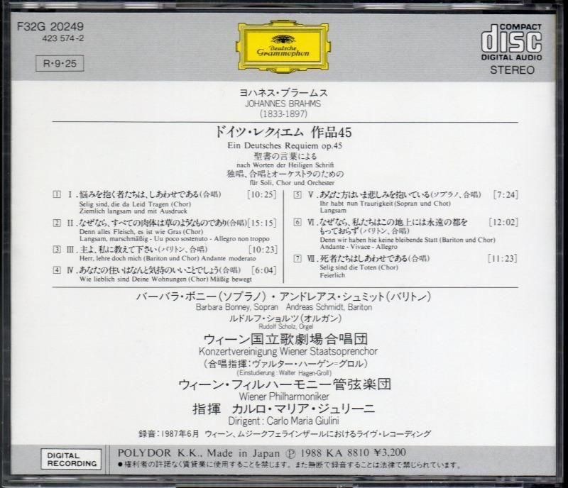 ブラームス:ドイツ・レクイエム ジュリーニ=WP; ボニー(S) 他 /L (F32G20249)