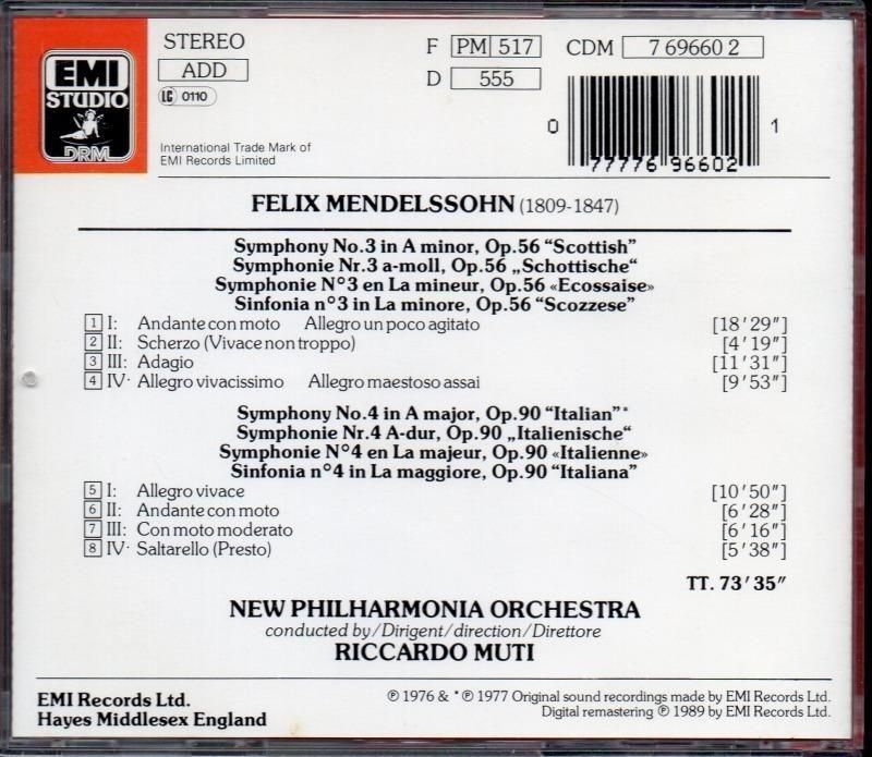 メンデルスゾーン:交響曲第3,4番 ムーティ=NPO (CDM769660)